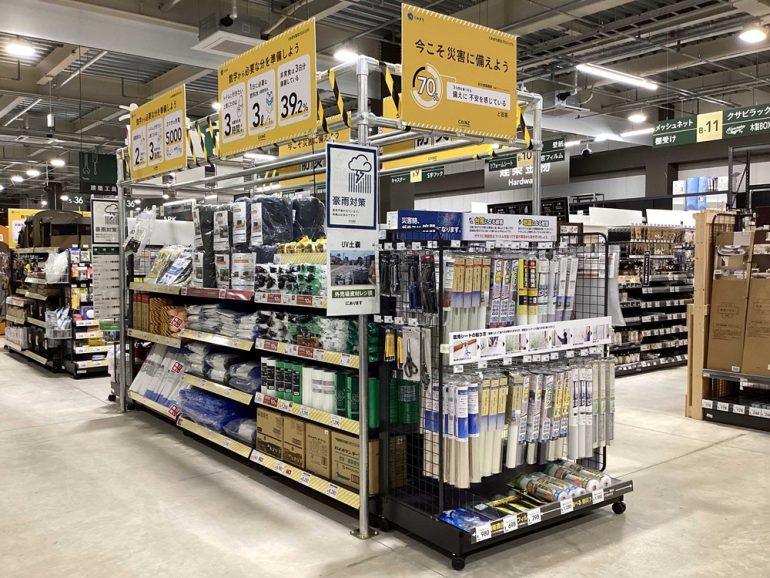 カインズの大型店舗では、災害対策アイテムをまとめて揃えられるカタログも配布している。また、オンラインで購入できる「台風・集中豪雨に備える」専用サイトを設置しているので、災害が起こる前に足りないものがないかぜひチェックしてほしい。