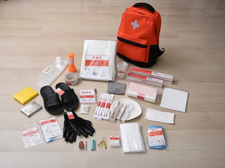 「もしもの時に最低限必要なアイテム30点を選んでセットにしました。防水タイプなので台風などの水害にも強い防災リュックとなっています」