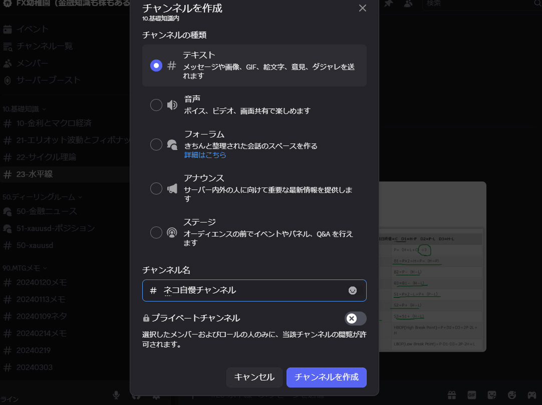 Discordは、「カテゴリー」を作成し、その中にテキストチャンネルや音声チャンネルなどを作って階層化できる。