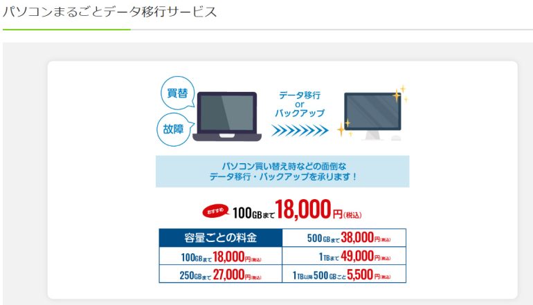 掛かるコストのほぼすべてが人件費であるため、時間がかかる作業ほど料金が高くなる。データ移行は、2万円弱の費用からで、容量見合いとなる。
