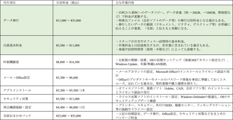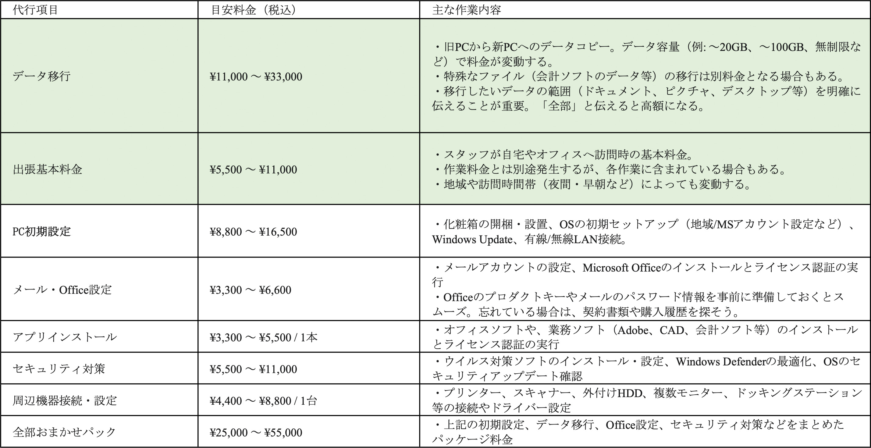 自分でやるには時間がかかりすぎるし、パソコンの深い設定関係にまで踏み込んで操作するのはミスが怖い…」と思ったら、PCセットアップの代行業者に依頼する手がある。