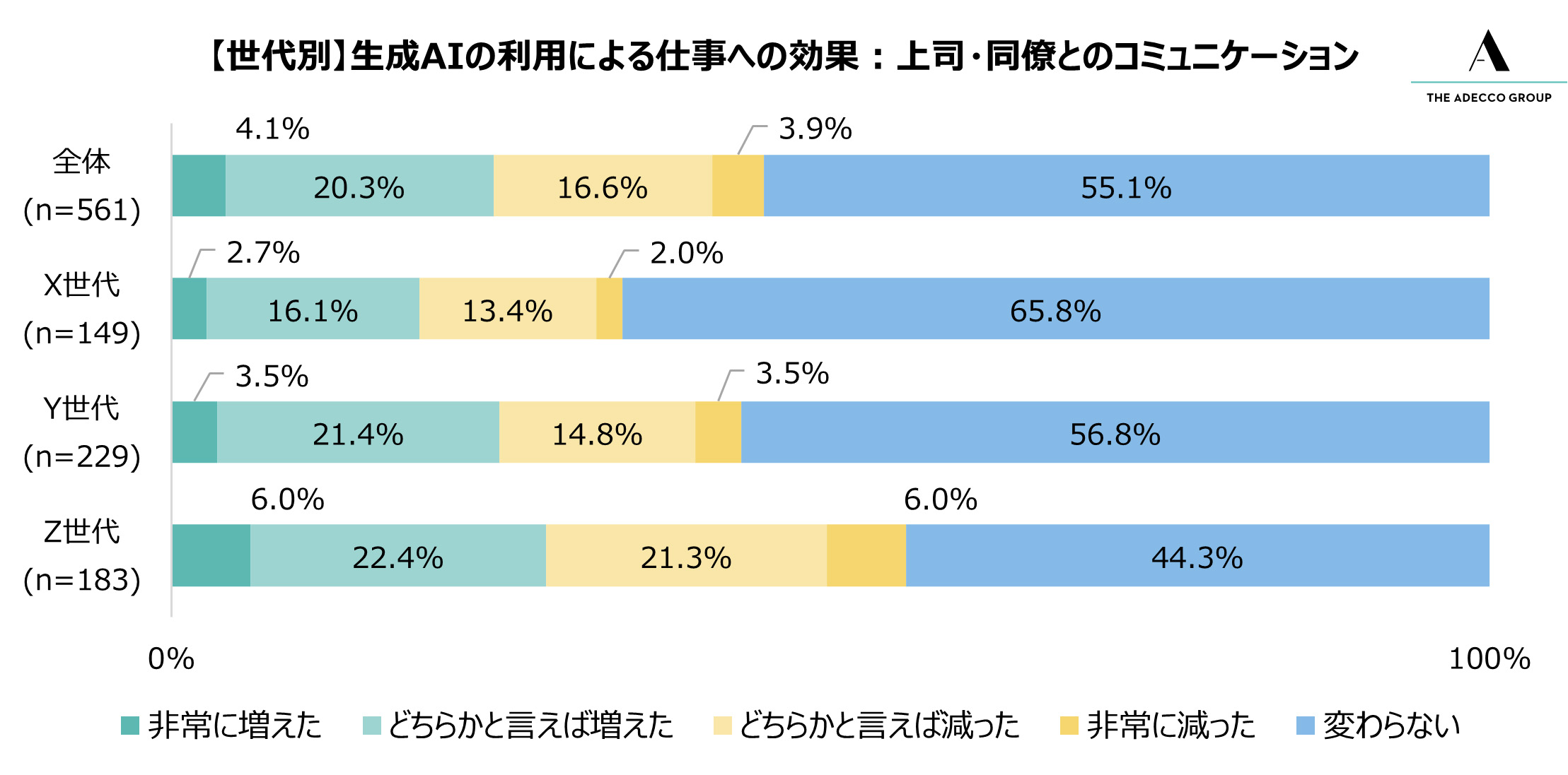 4. Z世代の働き手は、他の世代の働き手よりも、仕事で生成AIを利用することによる効果を強く感じていた