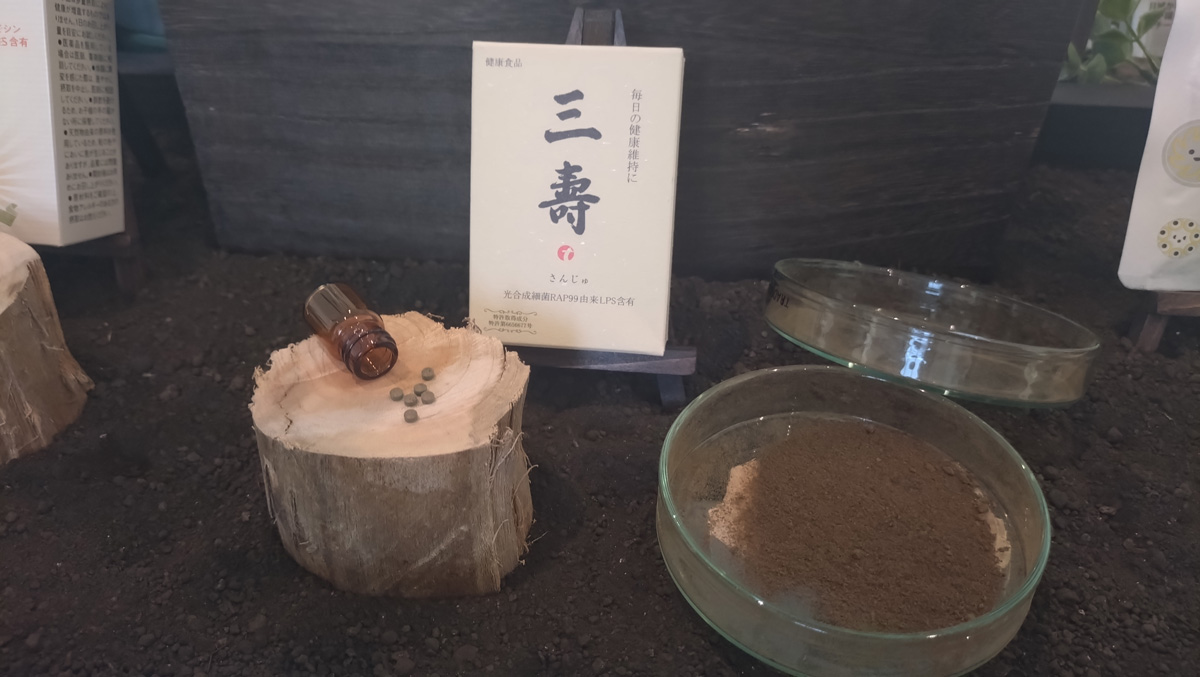 大学との共同研究や安全性の試験などを経て、光合成細菌RAP99を配合した健康食品「三壽」「百花玉(ひゃっかだま)」「健助玉(けんすけだま)」、機能性表示食品「関助玉(かんすけだま)」などを手がけている。