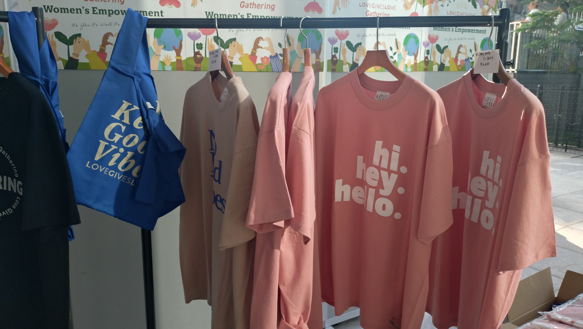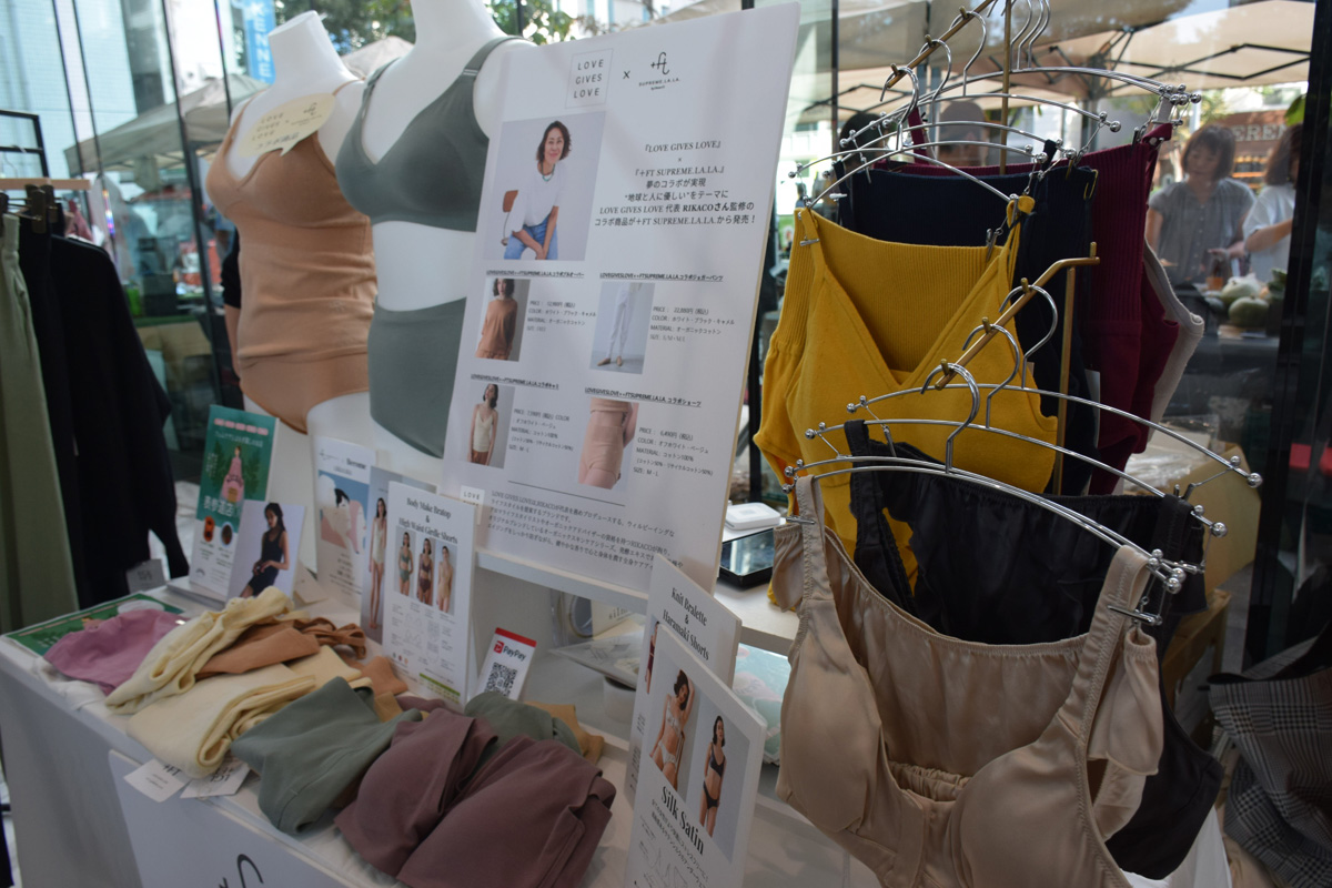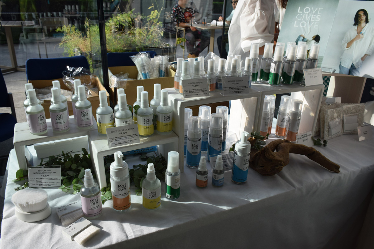 会場には、オーガニックなスキンケアシリーズやファッションアイテムを提供するRIKACOさんプロデュースのブランド「LOVE GIVES LOVE」や、
