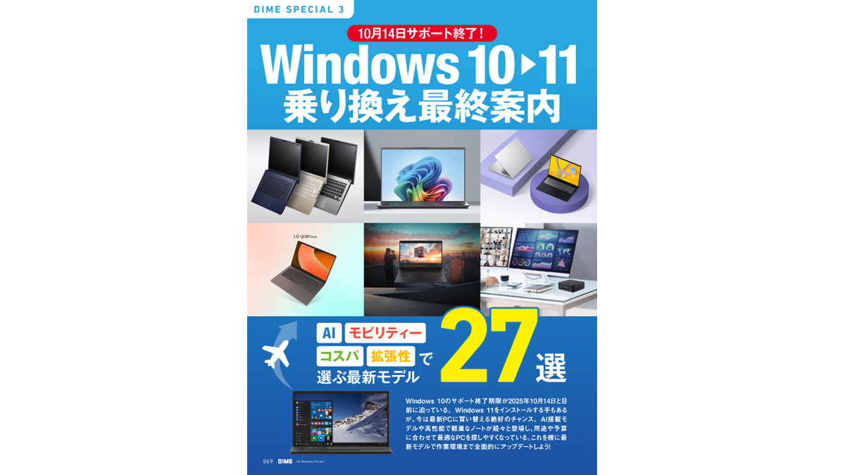 Windows 10のサポート終了期限が2025年10月14日と目前に迫っている。Windows 11をインストールする手もあるが、今は最新PCに買い替える絶好のチャンス。AI搭載モデルや高性能で軽量なノートが続々と登場し、用途や予算に合わせて最適なPCを探しやすくなっている。これを機に最新モデルで作業環境まで全面的にアップデートしよう!