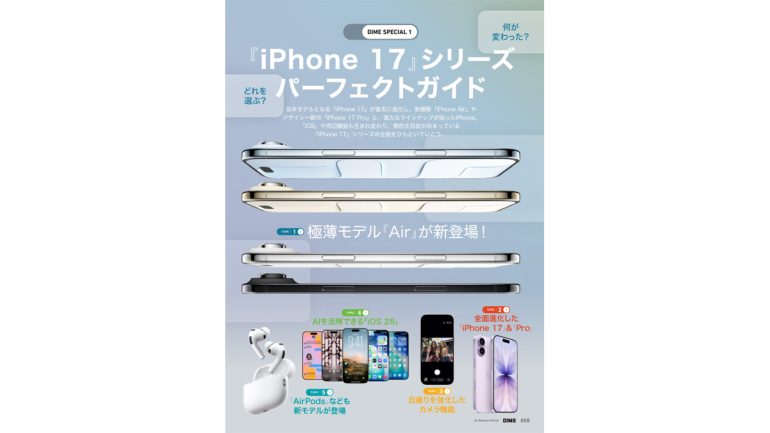 今月のDIME電子増刊号は、ついにベールを脱いだAppleの最新モデル『iPhone 17』シリーズを巻頭で大特集! デザインを一新したProモデルや、新たな選択肢となる『iPhone Air』、そして進化したiOSや周辺機器まで、その全貌を徹底解説。購入前に必ずチェックしたい、完全保存版です!