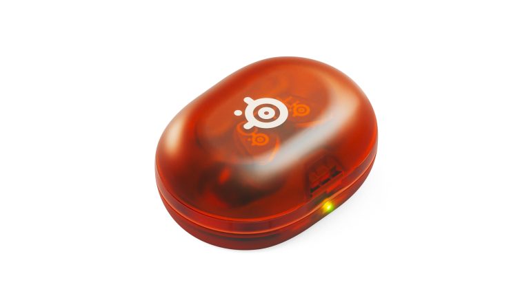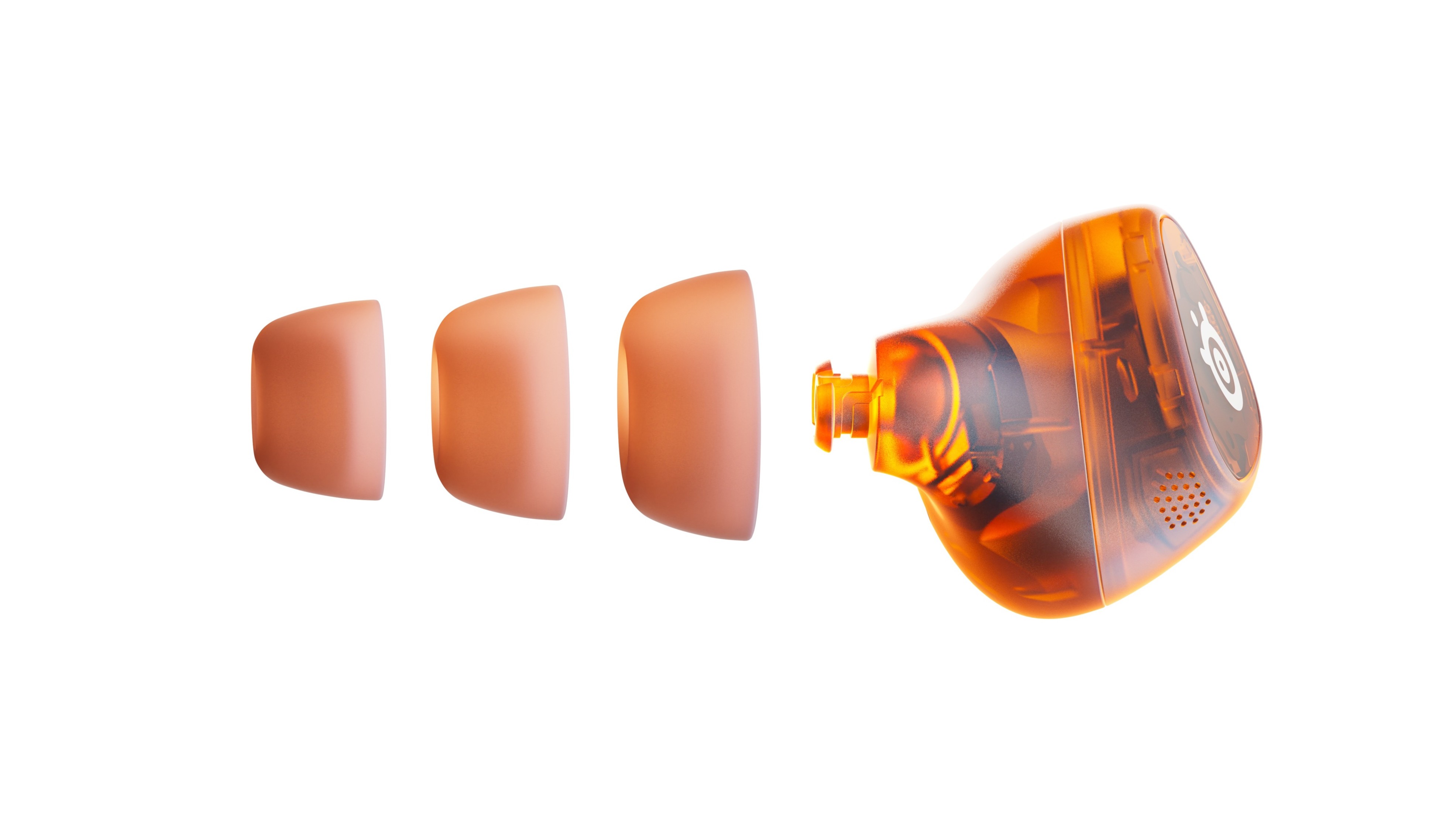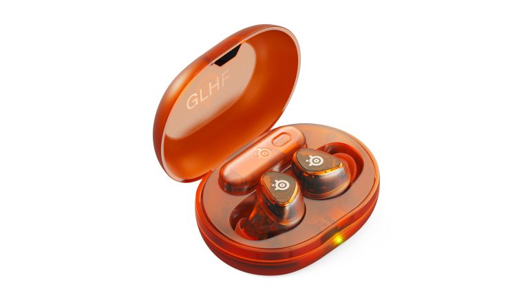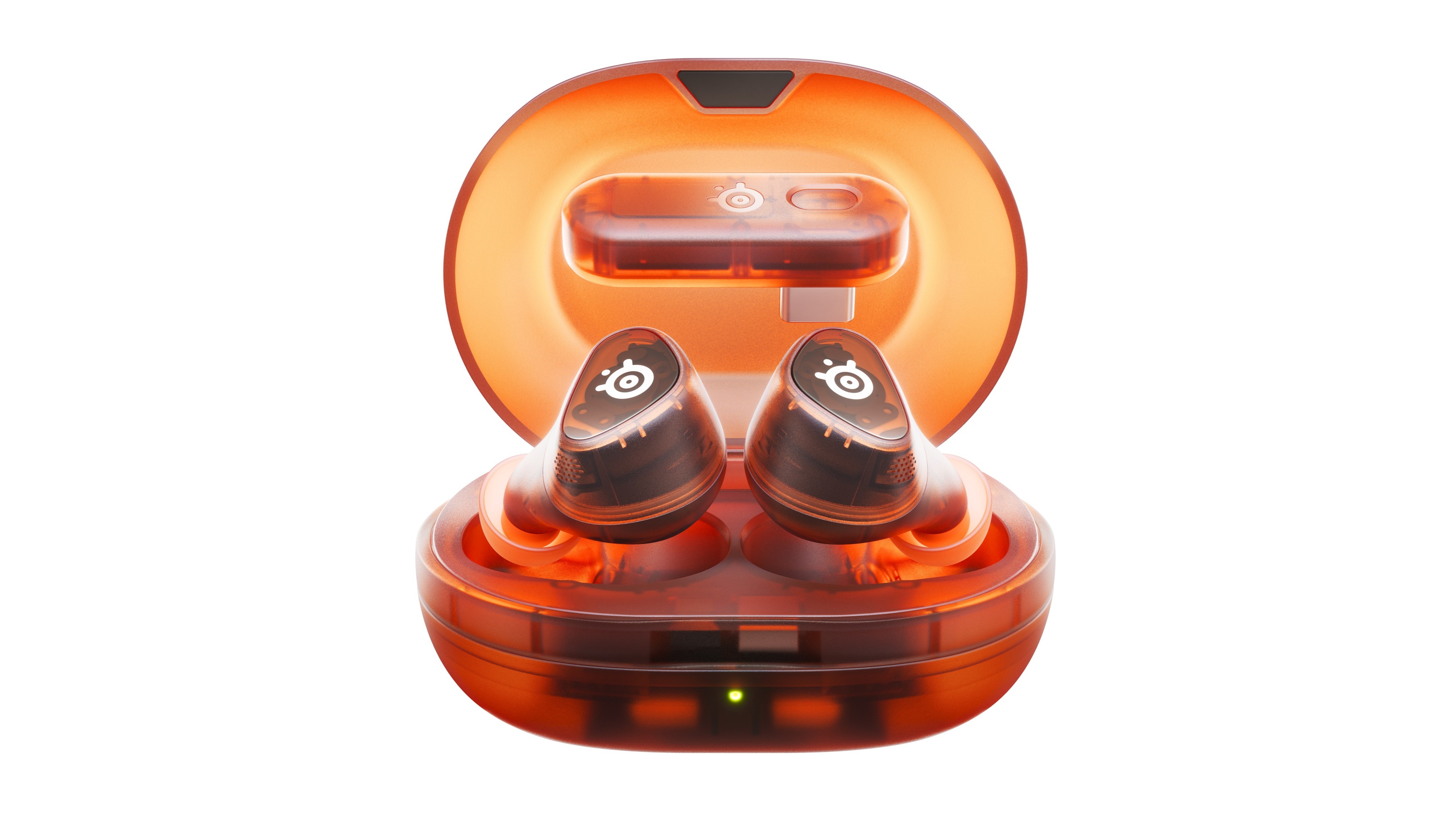 「Arctis GameBuds Glorange」は、今年5月に公式サイト限定で発売した製品。完全ワイヤレスイヤホン「Arctis GameBuds」の限定モデルで、ブランドカラーのオレンジを使用したスケルトンデザインが目を引く一品だ。