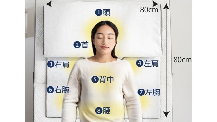 また、シートの独自形状とエアリーフロートのクッション性により、頭部だけではなく、肩や腕、腰までも含めた上半身全体を複数のポイントでサポートするのも特長。なお、まくらユニットとシート部はファスナーで切り離すことが可能なので、まくらユニットが固定されているため使いにくいなどと感じた際には、好みに応じて自由に動かすことができる。