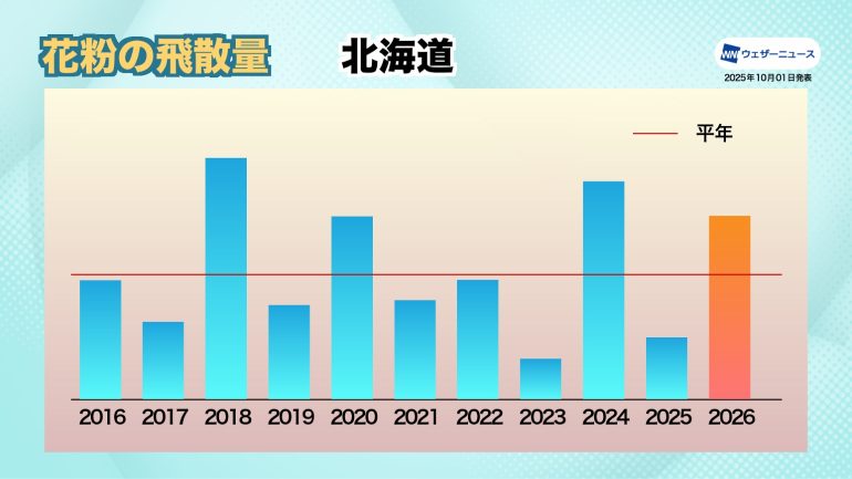 ■北海道:高温・多照の夏 「表年」傾向で飛散量は前年の約3倍増