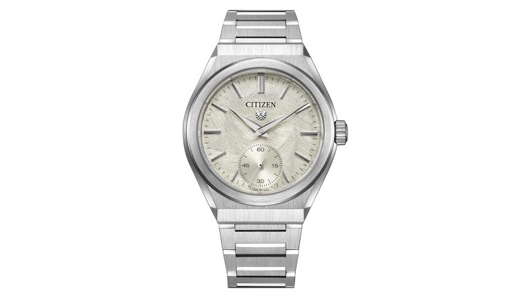 文字板やりゅうずには『ザ・シチズン』のシンボルである「イーグルマーク」を配した。「イーグルマーク」は、「常に先を見据え、理想を追求する」「身に着ける方に永く寄り添う」という『ザ・シチズン』の2つの意思を表す証だ。