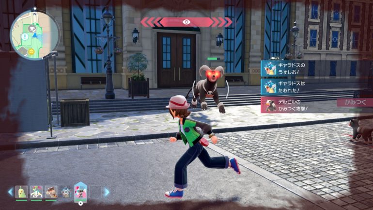 一方で、慣れない戦闘方法に翻弄されて、足を止めてしまうと、野生のポケモンの技で主人公がダウンをしてしまうこともある。特にオヤブンのヘルガーの攻撃は強力で技を2回受けてしまうだけで主人公はダウンして、ポケモンセンター送りになってしまった。私は、3回ほどオヤブンのヘルガーにダウンさせられたが、タイプ相性のいいポケモンを駆使しながら、また主人公が攻撃を受けないように移動することで、オヤブンのヘルガーを倒すことに成功。
