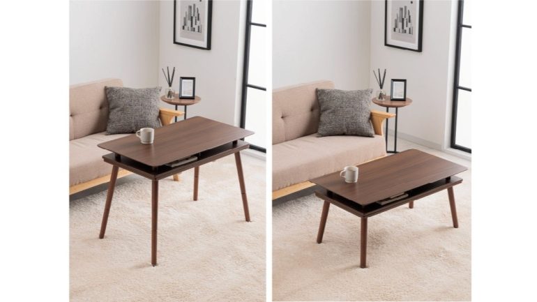 また、オールシーズン使えるデザインなのも嬉しいポイント。さらに、生活スタイルに合わせて高さを2段階調整できるのも特長で、付属の継脚(高さ20cm)を取り付けると、ソファに座った際にちょうど良い高さでパソコン作業や食事にも使えるセンターテーブルとして使用でき、継脚を外せば、床に座ってゆったりとくつろげるローテーブルとして活用することができる。