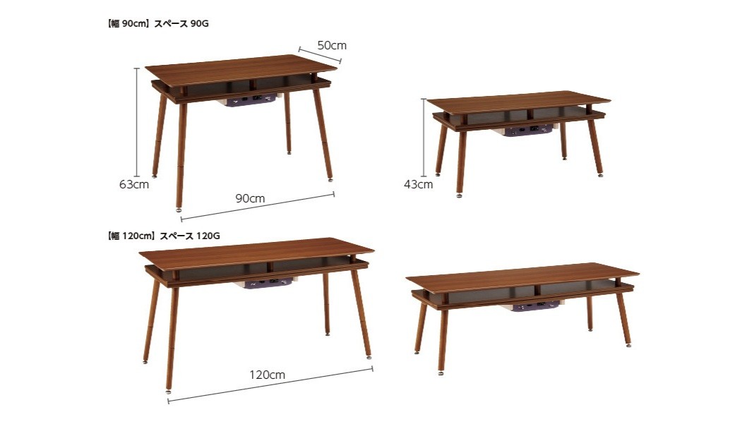 ユアサプライムスは、シェルフ付き2WAYこたつ「スペース」を2025年10月上旬に発売する。幅90cmの「スペース90G」と幅120cmの「スペース120G」の2サイズ展開で、希望小売価格は「スペース90G」が32,800円、「スペース120G」が37,800円。