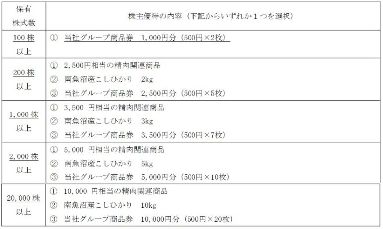 ただし注意しておくべき点もある。JMホールディングスは「毎年7月末日と前年の7月末日の基準日において、当社株主名簿に同一株主番号で1単元(100株)以上の保有が記載または記録されている」ことが株主優待を受け取る条件で、しかも、任意の日に株主番号チェックもあるため、来年の2026年7月の権利を受け取りたいなら2025年7月から株式を保有していないといけない。