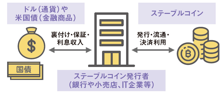 まず、ステーブルコインとは、ブロックチェーンの技術を使い、特定の法定通貨(今回は日本円)と常に1対1の同じ価値を持つように設計されたデジタル通貨のこと。価格が激しく変動するビットコインなどと違い、決済や送金に利用できる「安定性」が最大の特長だ。