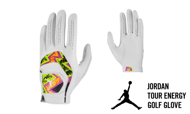 ツアー仕様の「ジョーダン ツアー エナジー ゴルフグローブ(左手用)」は複数サイズで展開。ホワイトを基調にしたマルチカラーが特徴。グリップ力とフィット感を追求し、プレー中のパフォーマンスを最大限に引き出す。