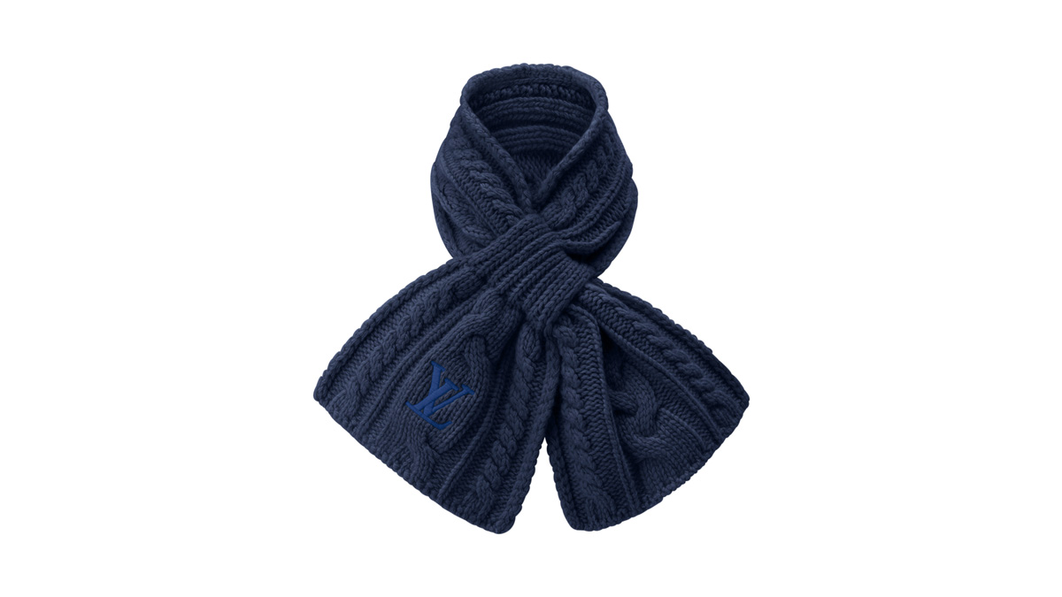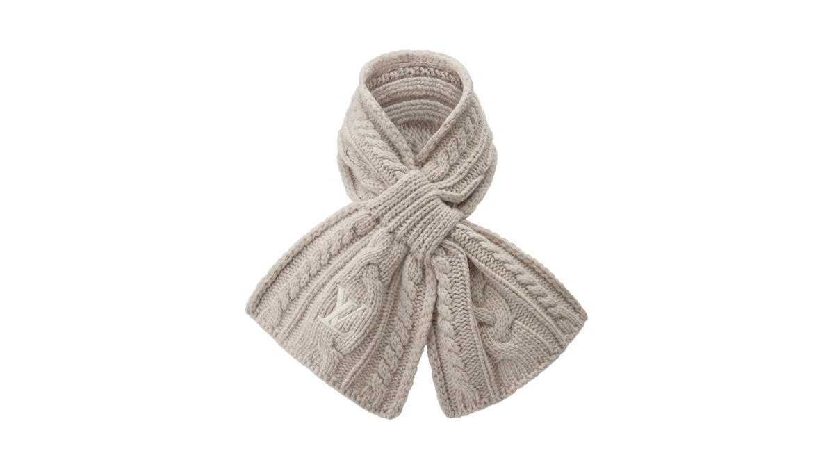 LV イニシャルの刺繍をあしらった、寒い季節の装いをスタイリッシュに演出する「マフラー・オンリー LV ミニケーブル」。