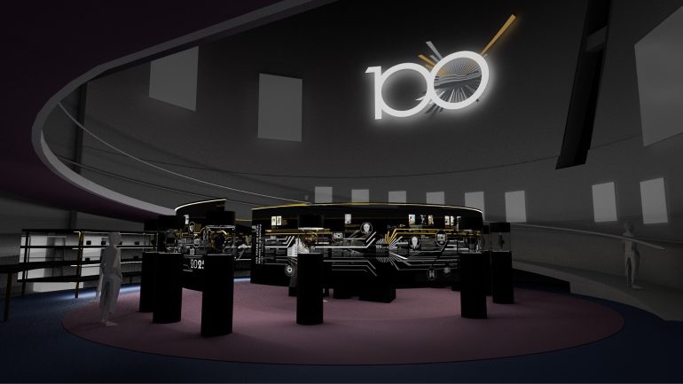スパイラルガーデンのアトリウムには、ライカ100年の軌跡をひとつの“渦” で表現した展示空間が登場。不変の価値とともに進化を続けてきたライカの歴史を体感できる空間は、穏やかな自然光が差し込む昼間と夜で表情を変える。