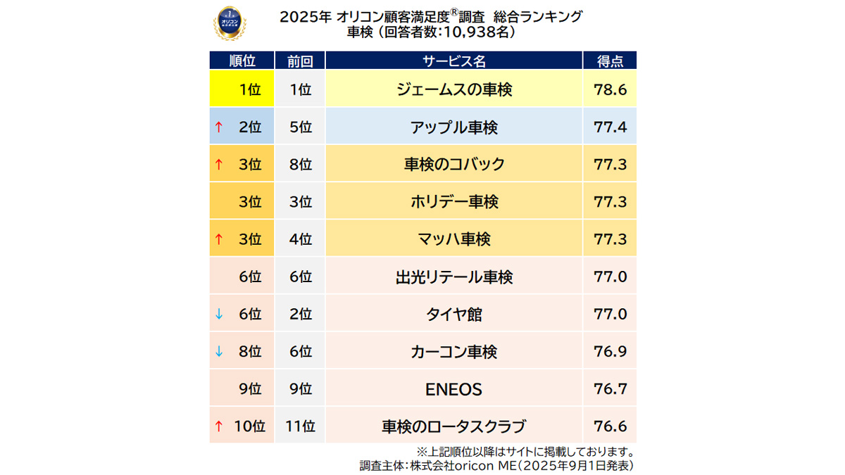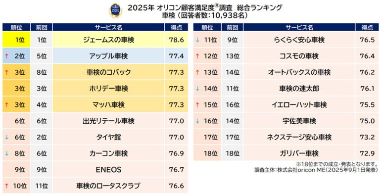 オリコンはこのほど、グループ会社であるoricon MEが、実際のサービス利用者を対象に第三者の立場で実施した『車検』についての顧客満足度調査の結果を発表した。