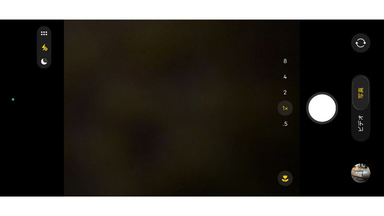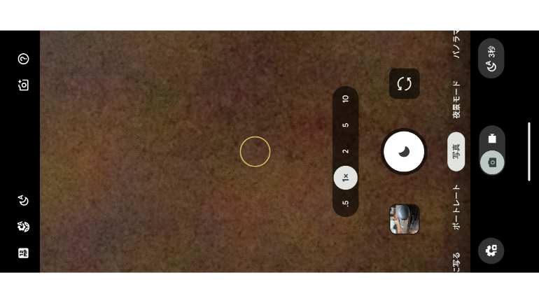 Pixel 10 Pro XLは、シャッターボタンの下に撮影モードを切り替えられるタブが並べられているほか、左下の設定から画角といった細かな設定、右下のアイコンからはシャドウや露出といったカメラらしい設定が行える。加えて、画面上部にもさまざまなアイコンが並んでいることから、どの設定項目が、どの領域に隠れているのかが若干分かりにくい。