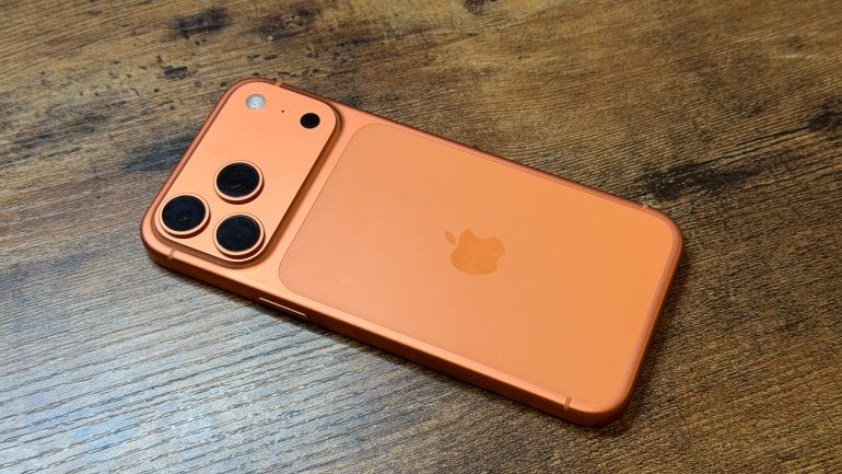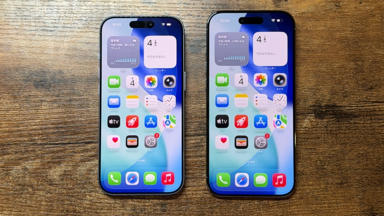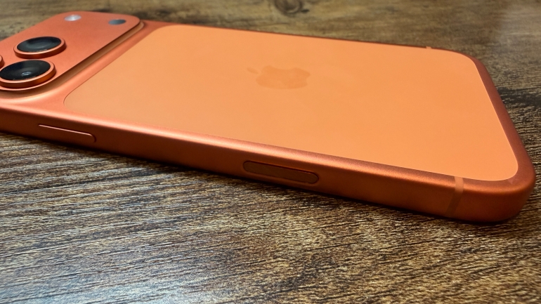 デザイン面の変更という意味では、Proモデル2機種も目を見張るものがある。新たにアルミニウムユニボディを採用し、背面はアルミ部分とガラス部分で色の違う、ツートンカラーとなった。デザイン面での賛否はあるだろうが、ガジェット感が増し、プロっぽさがアップしている印象を受ける。iPhone Proシリーズとしては珍しい、コズミックオレンジのパキッとした色味も、個人的には気に入っている。