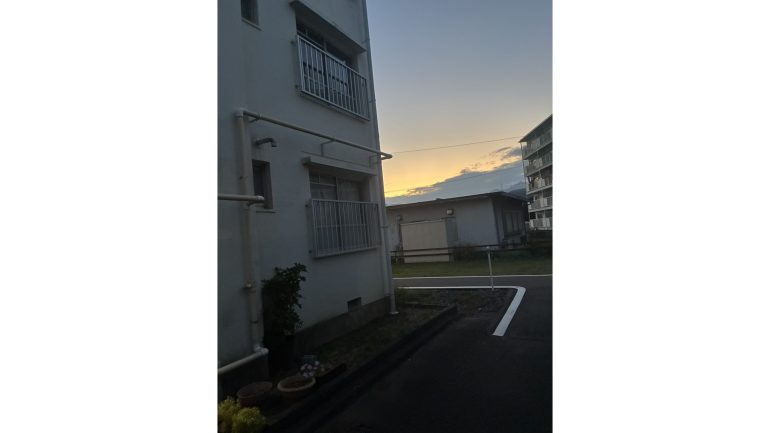 これはiPhone 16eで撮影したもので、時間帯は夕暮れ時、日没寸前の頃合いである。照明をつけなければ足元も見えづらい状況だが、それでも——いや、それを逆手に「エモい」感じの1枚を撮ってくれたのだ!