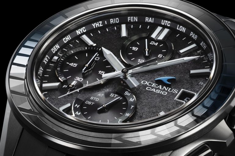 カシオは、アナログ電波ソーラーウオッチ“OCEANUS(オシアナス)”のプレミアムライン“OCEANUS Manta(オシアナス マンタ)”の新製品として、ベゼルに江戸切子を施し、月明りが差し込む静かな夜の海を表現した『OCW-S7000CN/OCW-SG1000CN』を11月14日に発売する。