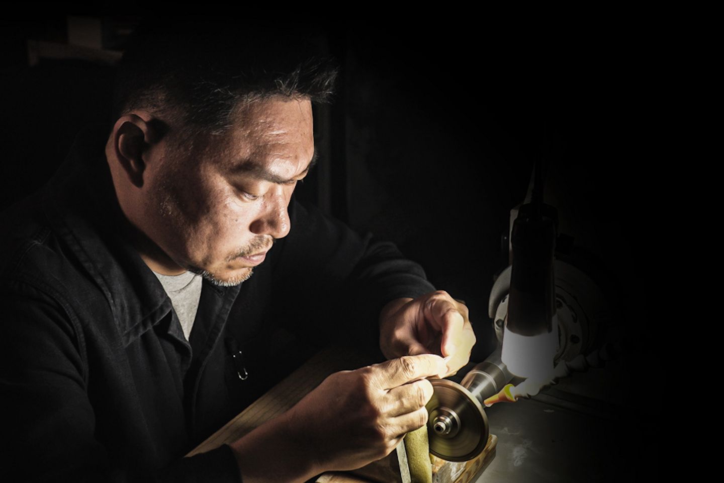 ベゼルの上半分に放射状に刻まれた千筋は月の柔らかな光を、下半分の水平方向の千筋は静かな海面に反射する光の揺らめきを表現。