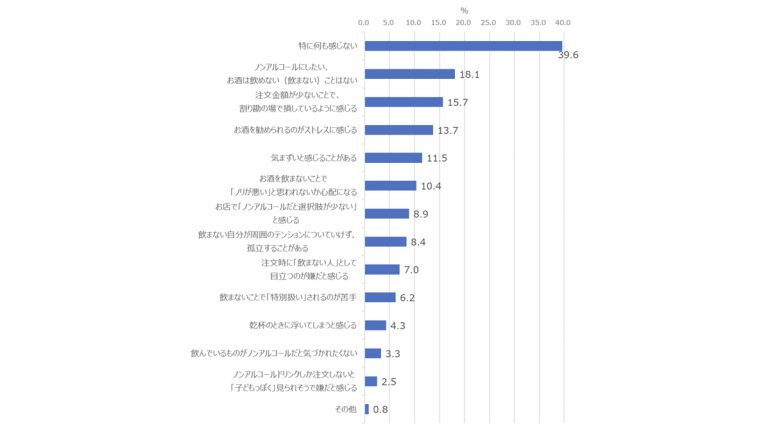 ※「特に何も感じない」、「ノンアルコールにしたい、お酒を飲めない(飲まない)ことはない」は他回答無効