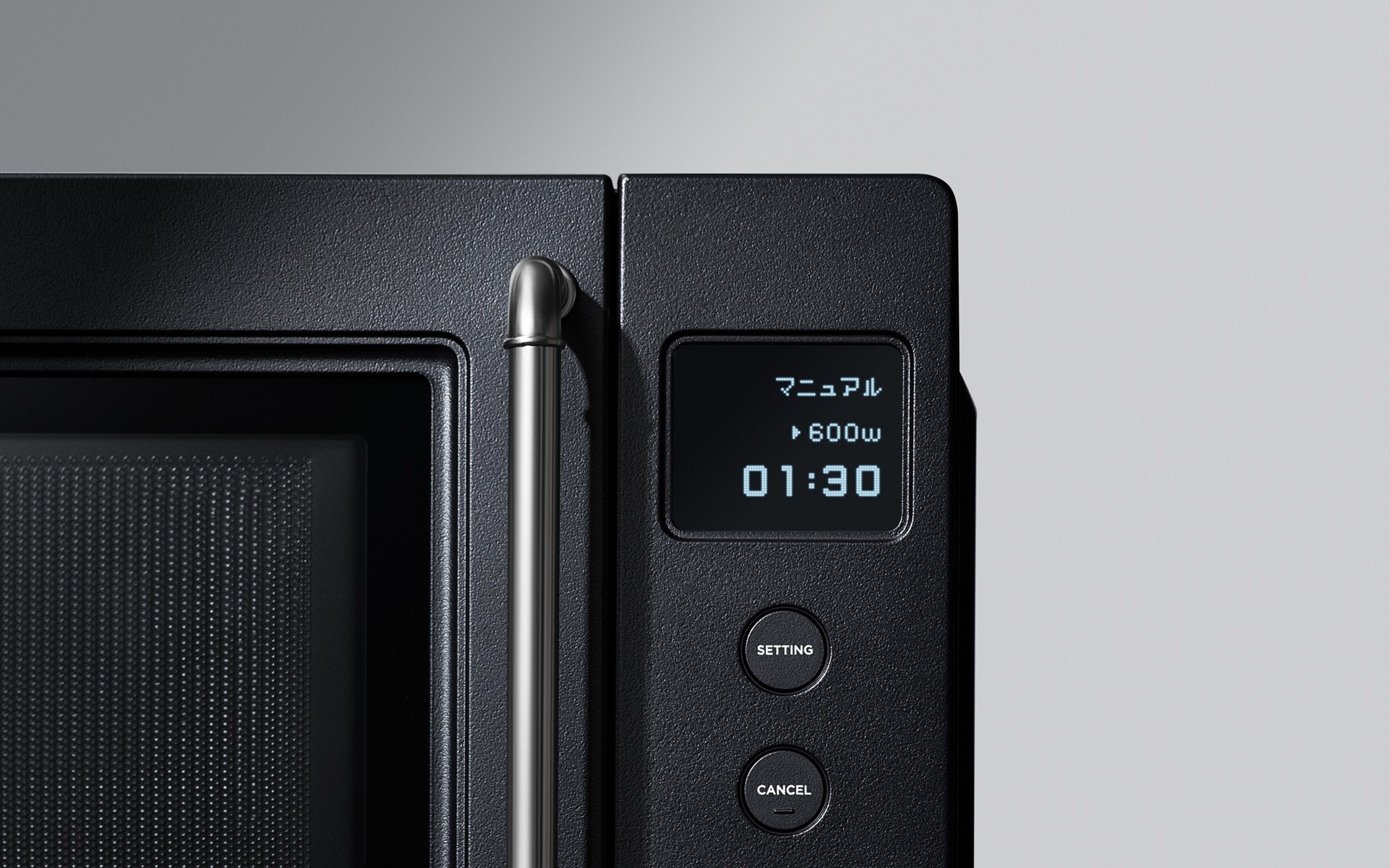 また、あたために必要十分な5つのモード(オート、マニュアル、ドリンク、冷凍ゴハン、解凍)を搭載し、ダイヤルひとつでスムーズに操作可能。さらに、遊び心のあるディスプレイは、オリジナルフォントとアイコンで構成。使用中に流れる心地よいサウンドとともに、使うたびに楽しいひとときを提供する。