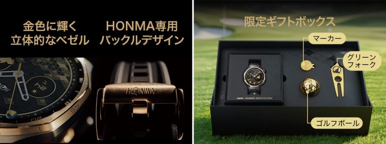 「HONMA×HUAWEI WATCH GT 6 Pro」は、ファーウェイの最新スマートウォッチ「HUAWEI WATCH GT 6 Pro」をベースに、HONMAの世界観を融合したデザインに仕上げた、ゴルフスマートウォッチ。ゴルフ機能は、ファーウェイがハイエンド帯で展開する「HUAWEI WATCH Ultimate」と同等のものを搭載し、同社では「ファーウェイ史上最も本格的なゴルフウォッチが誕生した」とアピールしている。