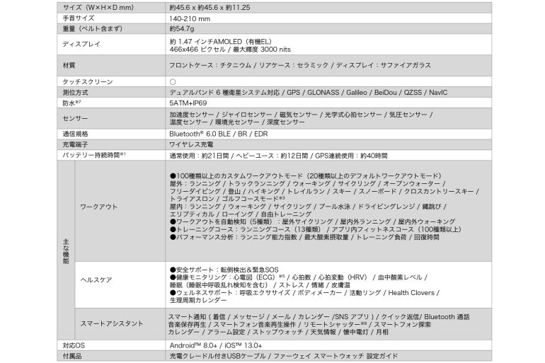 また、カバーガラスには高い耐摩耗性と耐擦傷性を持つサファイアガラス、ウォッチケースには航空グレードのチタン合金、リアケースには肌になじむセラミックを採用。さらに、約1.47インチの有機ELディスプレイは最大輝度3,000ニトを実現し、強い日差しの下でのプレーでも、ハッキリとした視認性を確保する。
