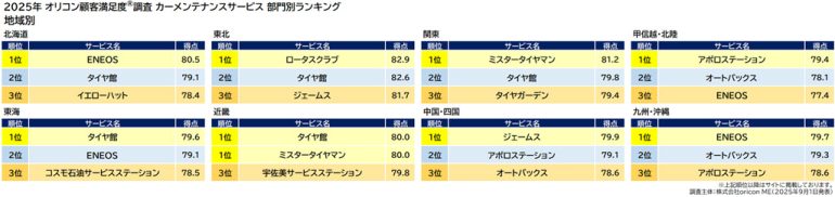 地域別ランキング…「北海道」「九州・沖縄」の 2 部門で【ENEOS】が 1 位に