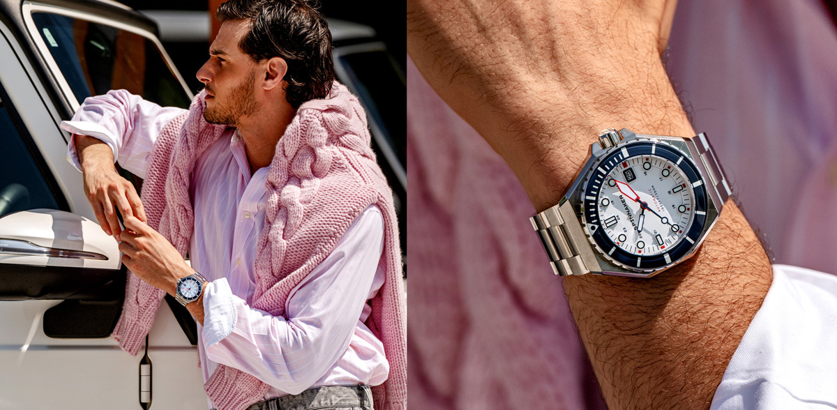 漂う高級感と際立つ個性。1970年代に流行した腕時計のデザインに着想を得た八角形ケースを採用した「DUMAS」は、ヴィンテージな趣きとモダンなスタイルを併せ持つ300M防水の機械式ダイバーズウォッチだ。