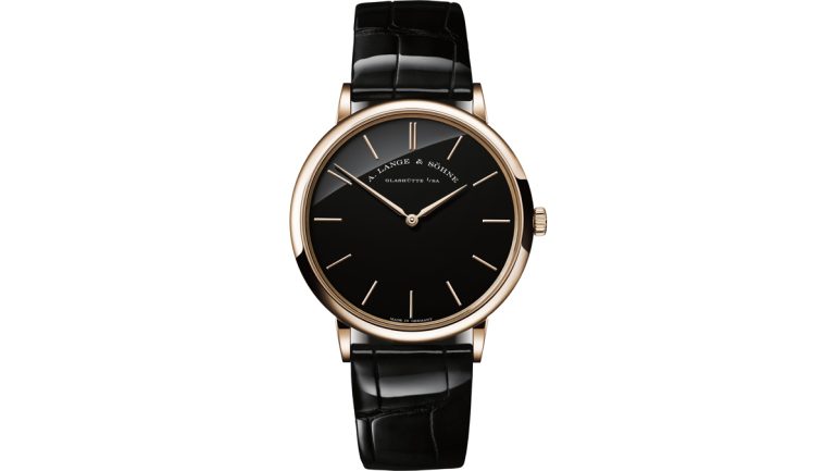そのサクソニア・フラッハに、ジェットブラックのオニキスダイヤルを備えたハニーゴールド750製と、プラチナ950製の洗練された二つの特別モデルが加わった。どちらのモデルも200本限定。