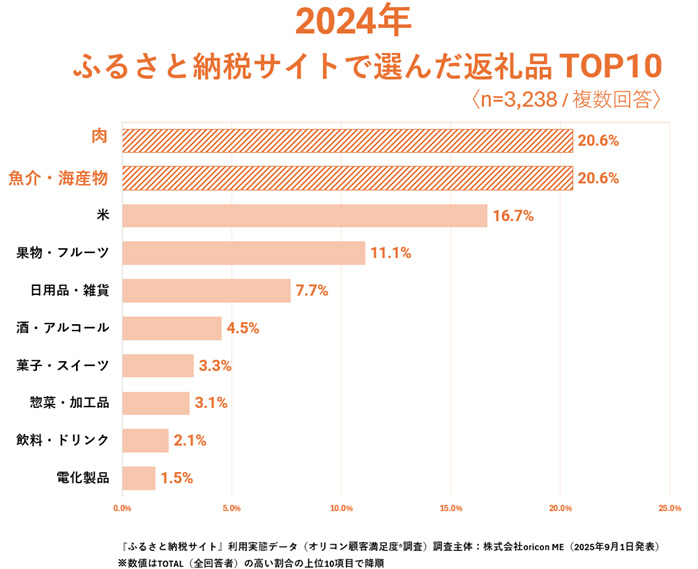 オリコンはこのほど、グループ会社であるoricon MEが、実際のサービス利用者を対象に第三者の立場で実施した9月発表の『ふるさと納税サイト』満足度ランキングの調査対象者3,238名に、別途聴取し集計した利用実態データを発表した。