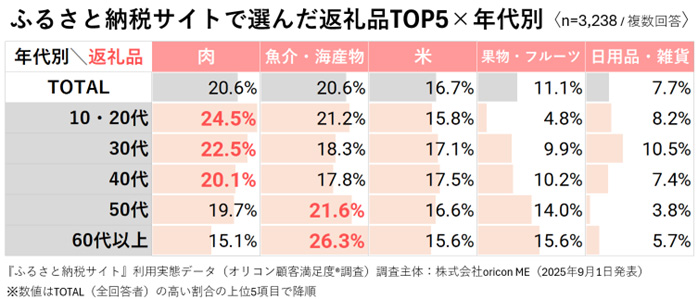 ふるさと納税サイトで選んだ返礼品 TOP5×年代別