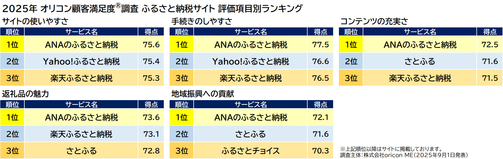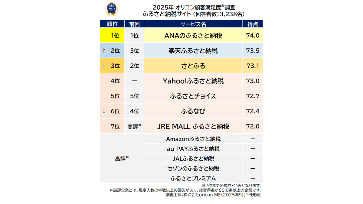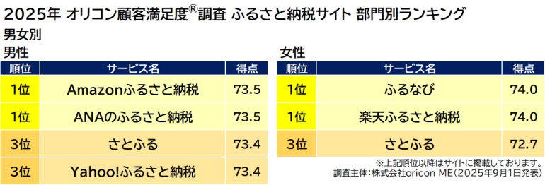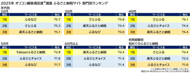 オリコンはこのほど、グループ会社であるoricon MEが、実際のサービス利⽤者を対象に第三者の⽴場で実施した『ふるさと納税サイト』の顧客満⾜度調査の結果を発表した。