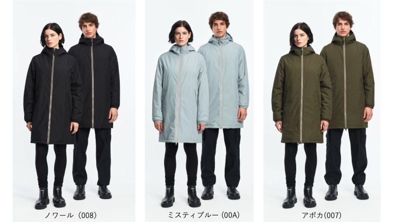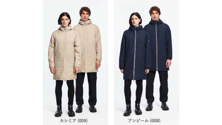 愛犬用モデルには取り外し可能なフードが付いており、雨や雪から毛並みを守り快適に過ごせるデザイン。飼い主とお揃いのスタイルで、冬の街やアウトドアを一緒に過ごせる。