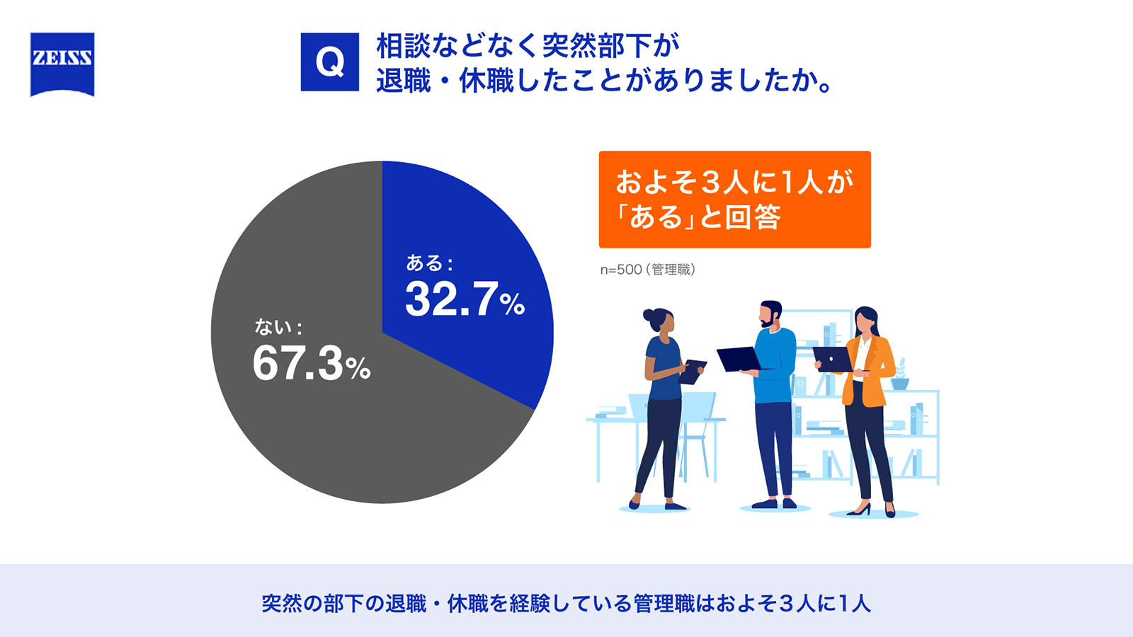 約3人にひとりの管理職が突然の部下の休職・退職を経験