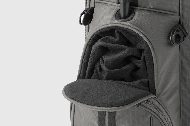 その他、スコープやボールを素早く取り出せるマグネット式ポケットや、ゴルフボールをダース箱ごと収納できるポケット、フードの収納に役立つ大型サイドポケットといった、充実の収納力を備えている。