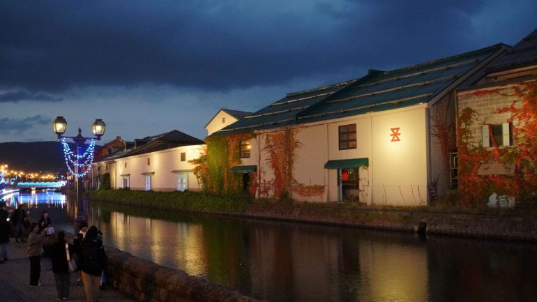 小樽運河周辺の紅葉は、歴史的な石造倉庫群と秋色に染まるツタが織りなす、懐かしさを感じる風景が魅力だ。運河沿いの遊歩道では、水面に映る紅葉とガス灯の明かりが調和し、映画のワンシーンのような美しさ。11月からは青の運河という特別なライトアップが実施され、より幻想的な景観を作り出している。