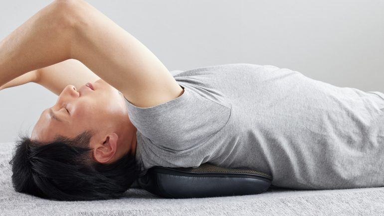 本製品は、扱いやすいコンパクトサイズのマッサージクッション。コンパクトながら、体重を広く分散する設計のため、寝ころんで肩甲骨まわりを強めにもみほぐすことが可能で、これまで届きづらかった肩甲骨まわりにしっかり入るもみ玉で、コリや疲れをほぐすことができる。