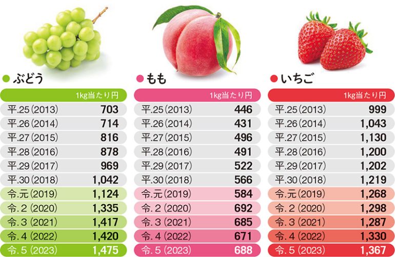 最も価格高騰が顕著なのはぶどう。「シャインマスカット」などの高級ブランドのヒットにより、フルーツのご褒美需要という新たなトレンドを生み出した。だがその一方で、値段が上がると日常で気軽にフルーツを食べる人が減ってしまうのも事実だ。
