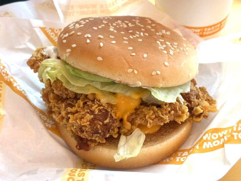 ハンバーグではなく、ゴツゴツとした衣をまとったモモ肉がバンズの間に挟まっている写真を見て、175cm94kgの筆者も「食べてみようかな」と思った次第だ。なお、価格はポテトとドリンクのセットで900円。