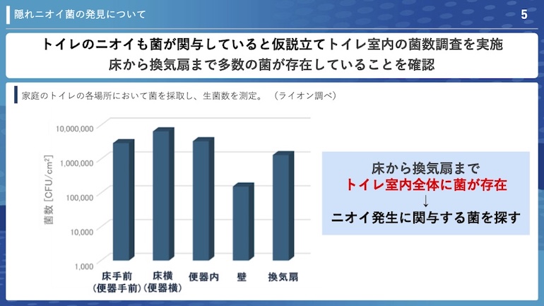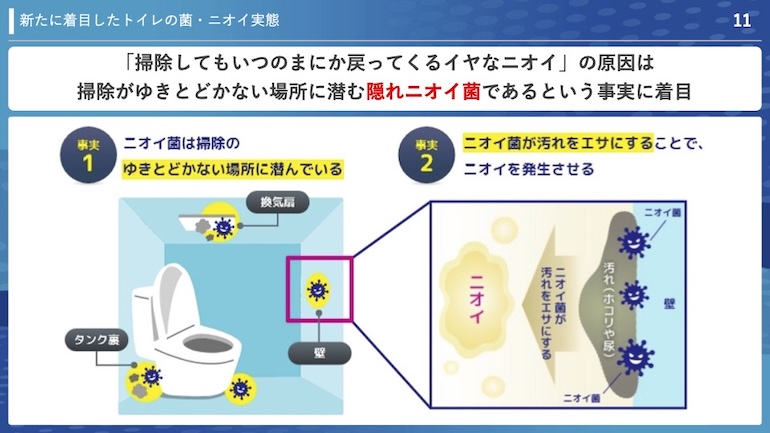 「ニオイの発生は掃除が行き届いていない場所に原因となるニオイ菌があると仮説を立てました」