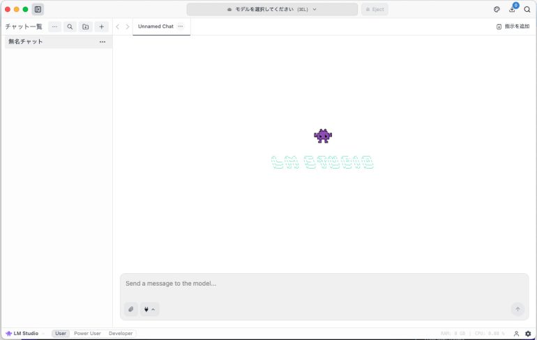 インストールして起動してみると、いかにもチャットができそうな画面が表示されました。