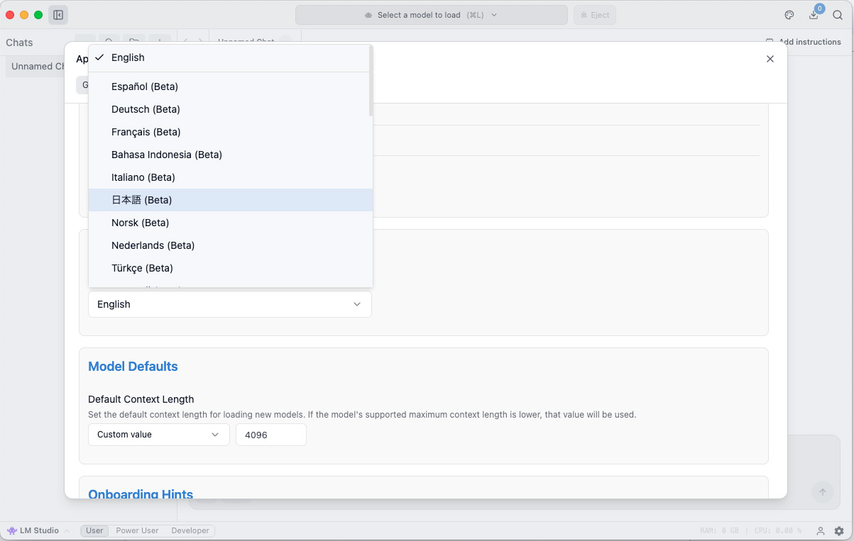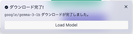 ダウンロード完了後、「Load Model」というボタンを選択して読み込んでみると、チャットのための準備が完了しました。早速なにか聞いてみます。