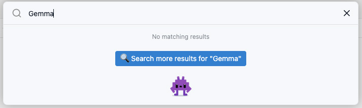 画面上部に表示される虫眼鏡マークとともに「Type to filter models…」と書かれている部分をクリックして、モデルを検索します。軽量なモデルということで、Googleの「Gemma」というモデルを検索して選んでみました。