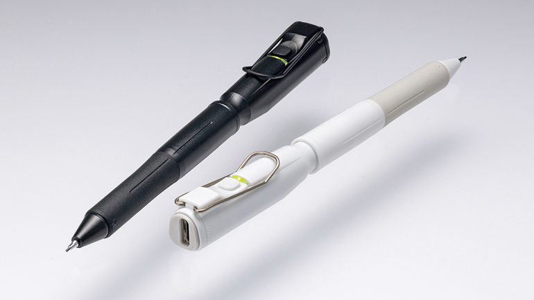 シャープペンの中に複数のセンサーを内蔵。機構は複雑だが、ゼブラが多機能ペンで培った技術を生かして小型化に成功した。